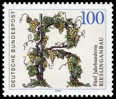 100p., polychrome Y&T N°1278 Michel N°1446 Emis en 1990 Dentelé 14 Cinq siècles de viticulture du Riesling |
