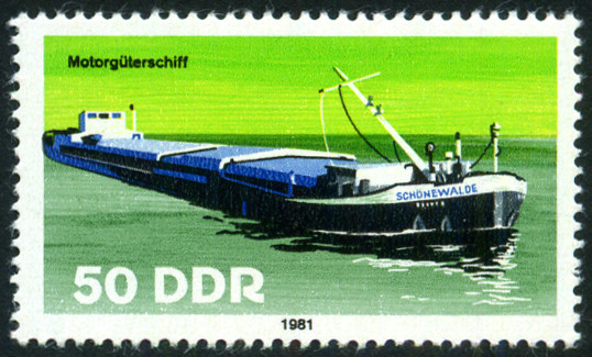 50p., polychrome Y&T N°2310 Michel N°2655 Emis en 1981 Dentelé 14 Bateaux fluviaux en R.D.A |