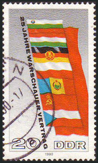 20p., polychrome Y&T N°2168 Michel N°2507 Issued on 1980 Dentelé 14 25e anniversaire de la signature du Traité de Varsovie |