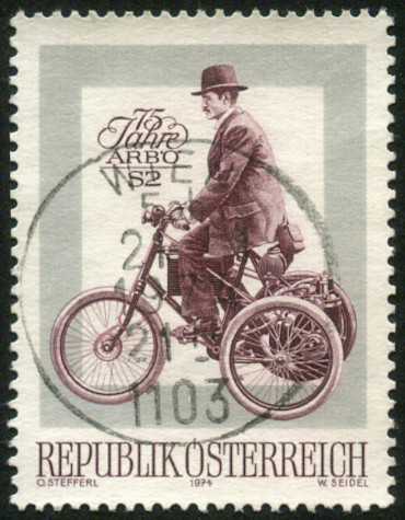 2s., gris et brun-lilas Y&T N°1280 Michel N°1451 emitida el 1974 75e anniversaire de l'Arbo (Association autrichienne d'automobilistes, cyclistes et motocyclistes Dentelé 14½x13½ |