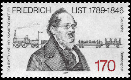 170p., noir, gris et rouge Y&T N°1261 Michel N°1429 Emis en 1989 Dentelé 14 Bicentenaire de la naissance de l'économiste et homme politique Friedrich List |