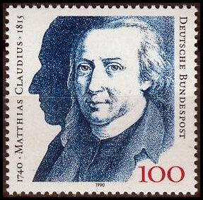 100p., noir, bleu et rouge Y&T N°1305 Michel N°1473 emitida el 1990 Dentelé 14 250e anniversaire de la naissance du poète et écrivain Matthias Claudius |