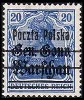 20p., bleu Y&T N°11 emitida el 1918 Timbre d'occupation allemande de 1916 surchargé à Varsovie "Gen. Gouv. Warschau" |