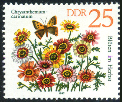 25p., polychrome Y&T N°2390 Michel N°2741 Emis en 1982 Dentelé 14 Fleurs d'automne |