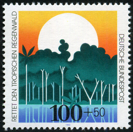 100p. + 50p., polychrome Y&T N°1443 Michel N°1615 Herausgegeben von 1992 Dentelé 13x13½ Protection de l'environnement "Sauvons la forêt tropicale" |