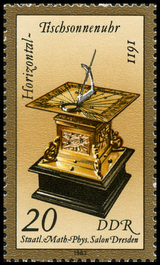 20p., polychrome Y&T N°2441 Michel N°2798 Emis en 1983 Dentelé 14 Pièces du Salon nationale de mathémathiques-physiques de Dresde Sabliers et cadrans solaires précieux |
