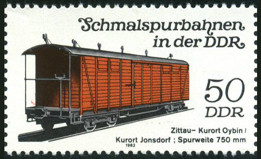 50p., polychrome Y&T N°2438 Michel N°2795 Emis en 1983 Dentelé 13x12½ Les chemins de fer à voies étroites en R.D.A |