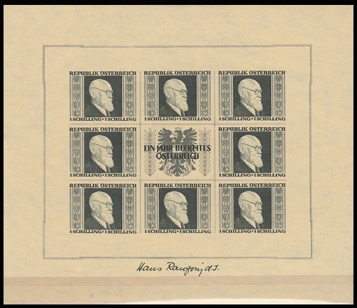 8*1s.+1s., vert-noir Y&T N°BF2 Michel N°772B Emis en 1946 Timbre n° 634 sur feuillet avec armoiries d'Autriche Non dentelé |