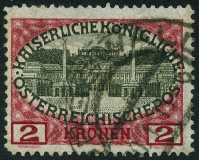 2k., carmin et olive Y&T N°115 Michel N°154w Emis en 1908 60e anniversaire du règne de François-Joseph 1er Gravé Dentelé 12½ |