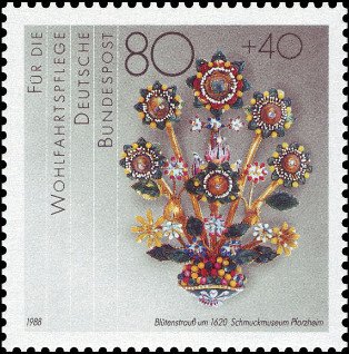 80p. + 40p., polychrome Y&T N°1218 Michel N°1386 Emis en 1988 Dentelé 14 Surtaxe au profit d'oeuvres de bienfaisance Chefs-d'oeuvre d'orfèvrerie des Musées de la République fédérale |