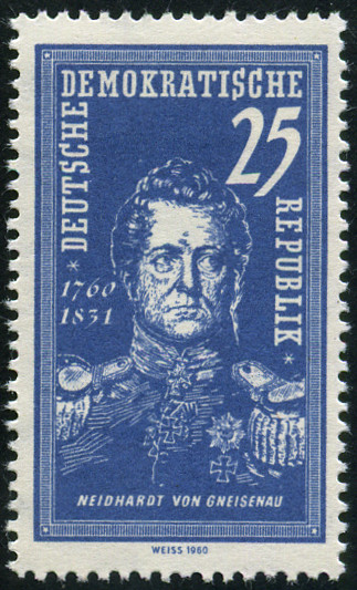 25p., bleu et ardoise Y&T N°509 Michel N°794 Emis en 1960 Dentelé 13 Filigrane "DDR" Bicentenaire de sa naissance |