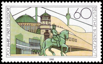 60p., polychrome Y&T N°1201 Michel N°1369 emitida el 1988 Dentelé 14 700e anniversaire de la ville de Düsseldorf |