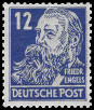 12p., bleu Y&T N°36 Michel N°216 Herausgegeben von 1948 Dentelé 13x12½ Filigrane "fil de fer " Timbre émis en l'honneur de célébrités allemandes |