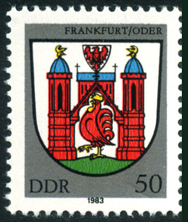 50p., polychrome Y&T N°2464 Michel N°2821 Emis en 1983 Dentelé 14 Armoiries de villes de la R.D.A |