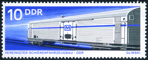 10p., bleu et noir Y&T N°1540 Michel N°1845 Emis en 1973 Dentelé 13x12½ Véhicules ferroviaires de la R.D.A |