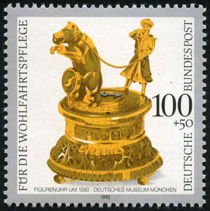 100p. + 50p., polychrome Y&T N°1466 Michel N°1634 Herausgegeben von 1992 Dentelé 14 Surtaxe au profit d'oeuvres de bienfaisance Horloges |