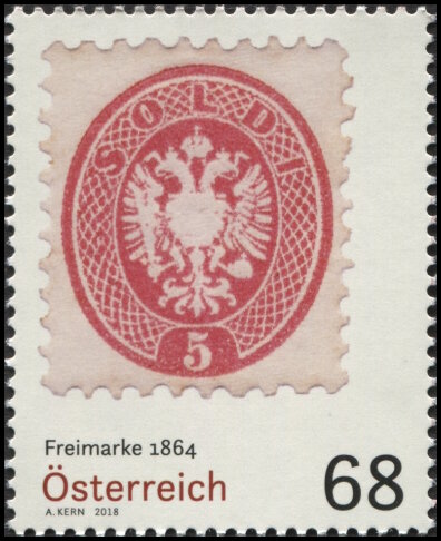 68c., polychrome Y&T N°3209 Michel N°3384 WNS N°AT008.18 Emis en 2018 Timbres classiques de 1863/1864 Impression offset Timbre émis uniquement en feuilles Dentelé 13 |