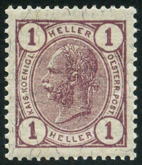 1h., lilas Y&T N°81 Michel N°105 Emis en 1904 Valeur en Heller Papier avec fils de soie avec lignes brillantes obliques Chiffres inscrits en couleurs Dentelé 13x12½, 13x13½ |