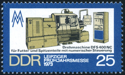 25p., bleu, olive et noir Y&T N°1530 Michel N°1833 Emis en 1973 Dentelé 13½x13 Foire de printemps de Leipzig |