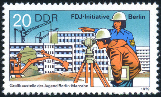 20p., polychrome Y&T N°2092 Michel N°2425 emitida el 1979 Dentelé 14 Initiatives de la jeunesse allemande (FDJ) pour Berlin |