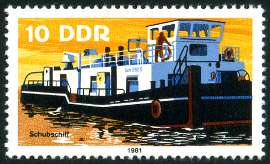 10p., polychrome Y&T N°2306 Michel N°2651 Emis en 1981 Dentelé 14 Bateaux fluviaux en R.D.A |