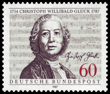 60p., noir, gris-beige et rouge Y&T N°1175 Michel N°1343 Emis en 1987 Dentelé 14 Bicentenaire de la mort du compositeur Christoph Willibald Gluck |
