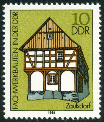 10p., polychrome Y&T N°2278 Michel N°2623 Issued on 1981 Dentelé 14 Maisons ŕ colombages de la R.D.A |