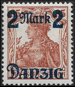 2 Mark sur 35p., brun-rouge Y&T N°40 Michel N°28 I Herausgegeben von 1920 Burelage gris ou gris-verdatre droit |