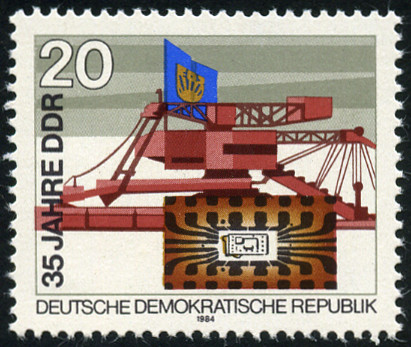20p., polychrome Y&T N°2521 Michel N°2889 Emis en 1984 Dentelé 14 35e anniversaire de la République Démocratique Allemande |
