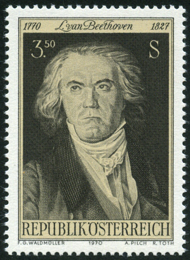 3.50s., gris-noir sur bistre Y&T N°1181 Michel N°1352 Herausgegeben von 1970 200e anniversaire de la naissance de Ludwig van Beethoven Dentelé 13½ |