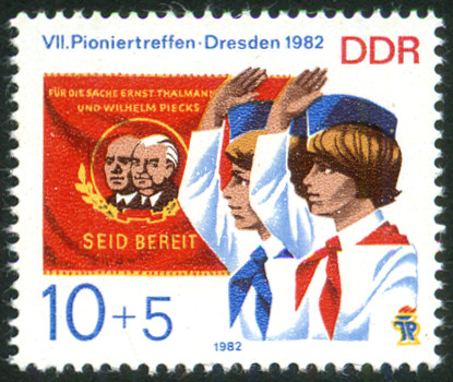 10p. + 5p., polychrome Y&T N°2373 Michel N°2724 Emis en 1982 Dentelé 14 Surtaxe en faveur de l'organisation 7e réunion des Pionniers, à Dresde |