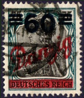 60 sur 75p., vert et noir. Y&T N°72 Michel N°72 Herausgegeben von 1921 Timbre Y&T 34 surchargé en bleu |