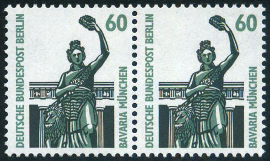 60p.*2, vert-noir et gris Y&T N°752a Emis en 1987 Dentelé 14 Légende BERLIN Paire horizontale |
