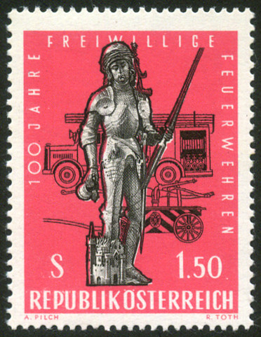 1.50s., rose et noir Y&T N°969 Michel N°1131 Emis en 1963 Centenaire du Corps de pompiers volontaires Dentelé 13 |
