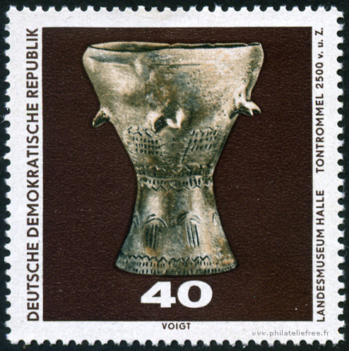 40p., brun et polychrome Y&T N°1249 Michel N°1556 Emis en 1970 Dentelé 13 Musée de préhistoire de Halle/Saale Découvertes archéologiques |