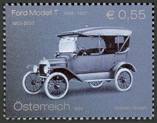 0.55¤, polychrome Y&T N°2259 Michel N°2427 WNS N°AT025.03 emitida el 2003 Centenaire de la Ford Morors Company Timbre émis uniquement en feuillet Dentelé 13½x14 |
