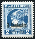 3c sur 2h., bleu Y&T N°Italie-23 emitida el 1918 Timbre pour journaux d'Autriche-Hongrie surchargés Centesimi |