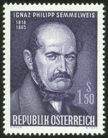 1.50s., violet foncé Y&T N°1028 Michel N°1192 Emis en 1965 Centenaire de la mort d'Ignaz Philipp Semmelweis Dentelé 14x13½ |