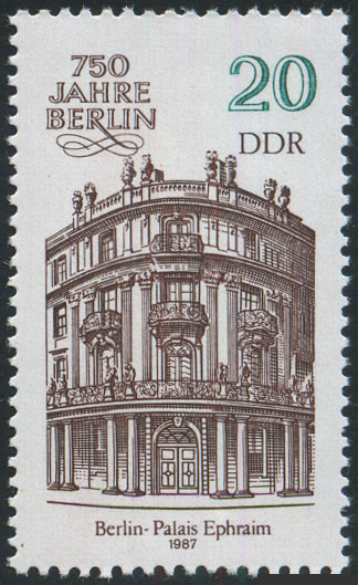 20p., brun-rouge et vert sur rose Y&T N°2691 Michel N°3071 emitida el 1987 Dentelé 12½x13 750e anniversaire de Berlin |