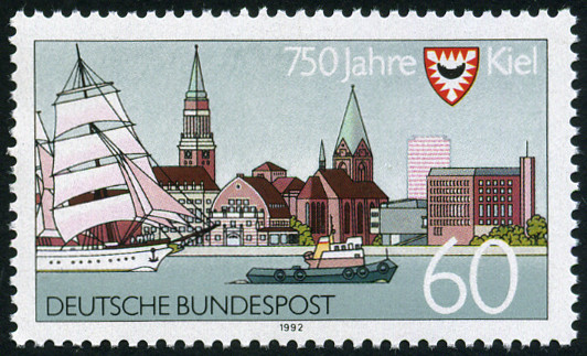 60p., polychrome Y&T N°1425 Michel N°1598 Herausgegeben von 1992 Dentelé 14 750e anniversaire de la ville de Kiel |