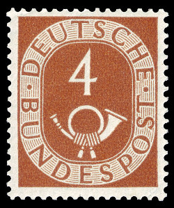 4p., brun-jaune Y&T N°10 Michel N°124 emitida el 1951 Dentelé 14 Filigrane "B P" |