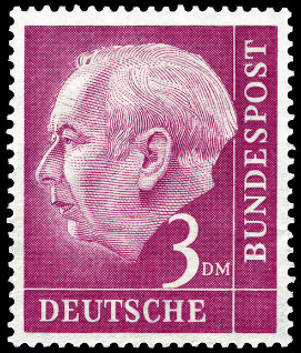 3DM., lie-de-vin Y&T N°72B Michel N°196 Issued on 1954 Dentelé 14 Filigrane "B P" Gravé 70e anniversaire du président Thedore Heuss |
