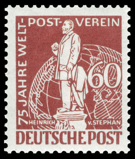 60p., brun-rouge Y&T N°25 Michel N°39 Emis en 1949 Dentelé 14 Filigrane "POST DEUTSCH" 75e anniversaire de l'U.P.U |