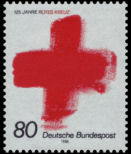 80p., rouge et noir Y&T N°1219 Michel N°1387 Emis en 1988 Dentelé 14 125e anniversaire de la Croix-Rouge |