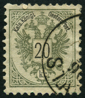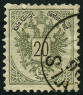20k., gris Y&T N°44 Michel N°48 emitida el 1883 Chiffre noir Filigrane au milieu de la feuille BRIEFMARKEN ou ZEITUNGSMARKEN en capitales à double traits Dentelé 9½ à 10 |