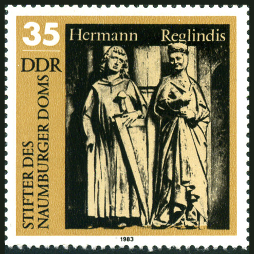 35p., polychrome Y&T N°2453 Michel N°2810 Emis en 1983 Dentelé 13 Fondateurs de la cathédrale de Naumburg Statues grandeur nature |