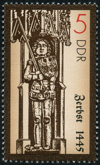 5p., brun, beige, rouge et noir Y&T N°2889 Michel N°3285 Issued on 1989 Dentelé 14 Statues du Chevalier Roland |