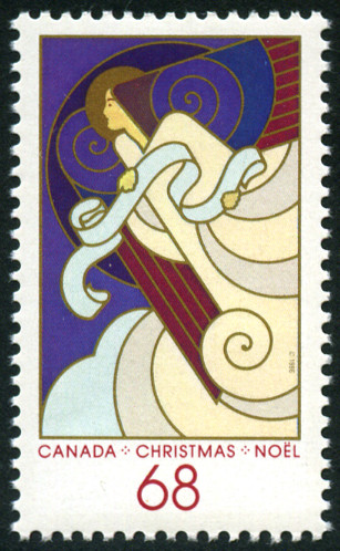 68c., or et polychrome Y&T N°976 Emis en 1986 Noël Dentelé 12½ |