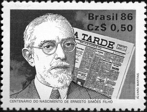 0.50Cz$., polychrome Y&T N°1807 Scott N°BR 2188 Emis en 1986 100e anniversaire de sa naissance Dentelé 11½x12 |