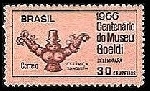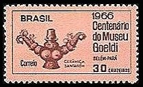 30cr., brun-violet sur saumon Y&T N°803 Scott N°BR 1117 Emis en 1966 100ème anniversaire du Musée Goeldi de Belem Filigrane "CORREIO ☆ BRASIL" Dentelé 11x11½ |